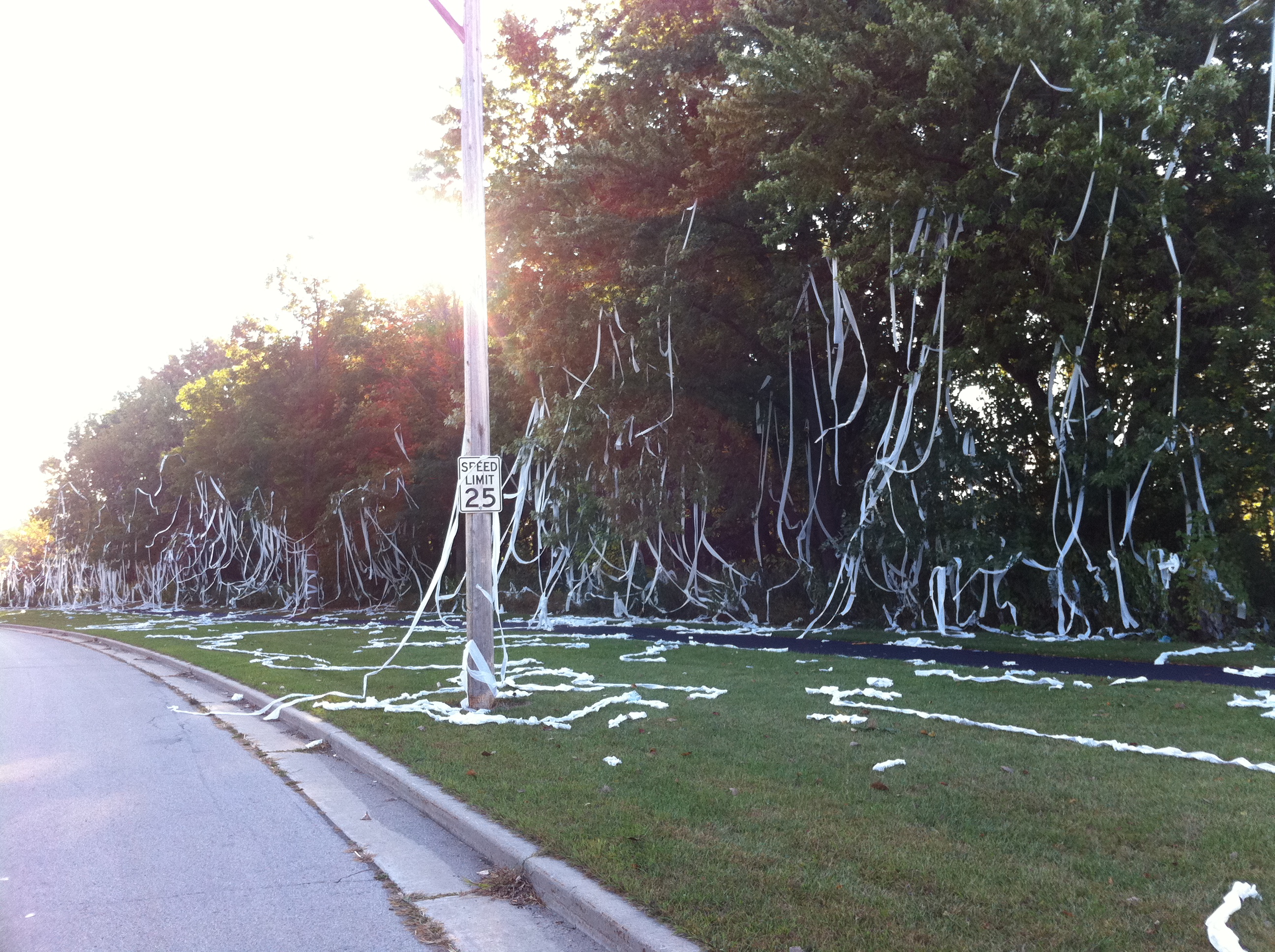 First of all, I think the school district’s response for the most part worked, and I thank the district for being proactive about the issue this year. Working with students and the police, school officials attempted to keep the TP confined to school property, west of the railroad tracks on the parkway and not north of the street. A drive through the area this morning confirmed that students pretty much stayed within those limits, and I appreciate that.