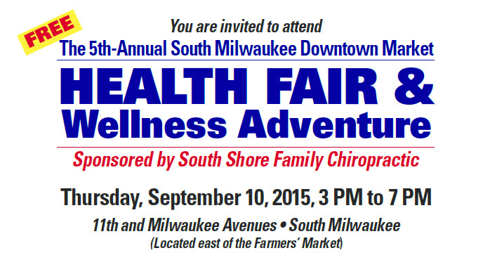 The fair, presented by South Shore Family Chiropractic, is set for Thursday, Sept. 10, and will feature more than 20 vendors. The event runs from 3 to 7 p.m., the same hours as the market. The mapped 3K run/walk, presented by the South Milwaukee Health Department, is from 3 to 6 p.m., starting and finishing at the market.
