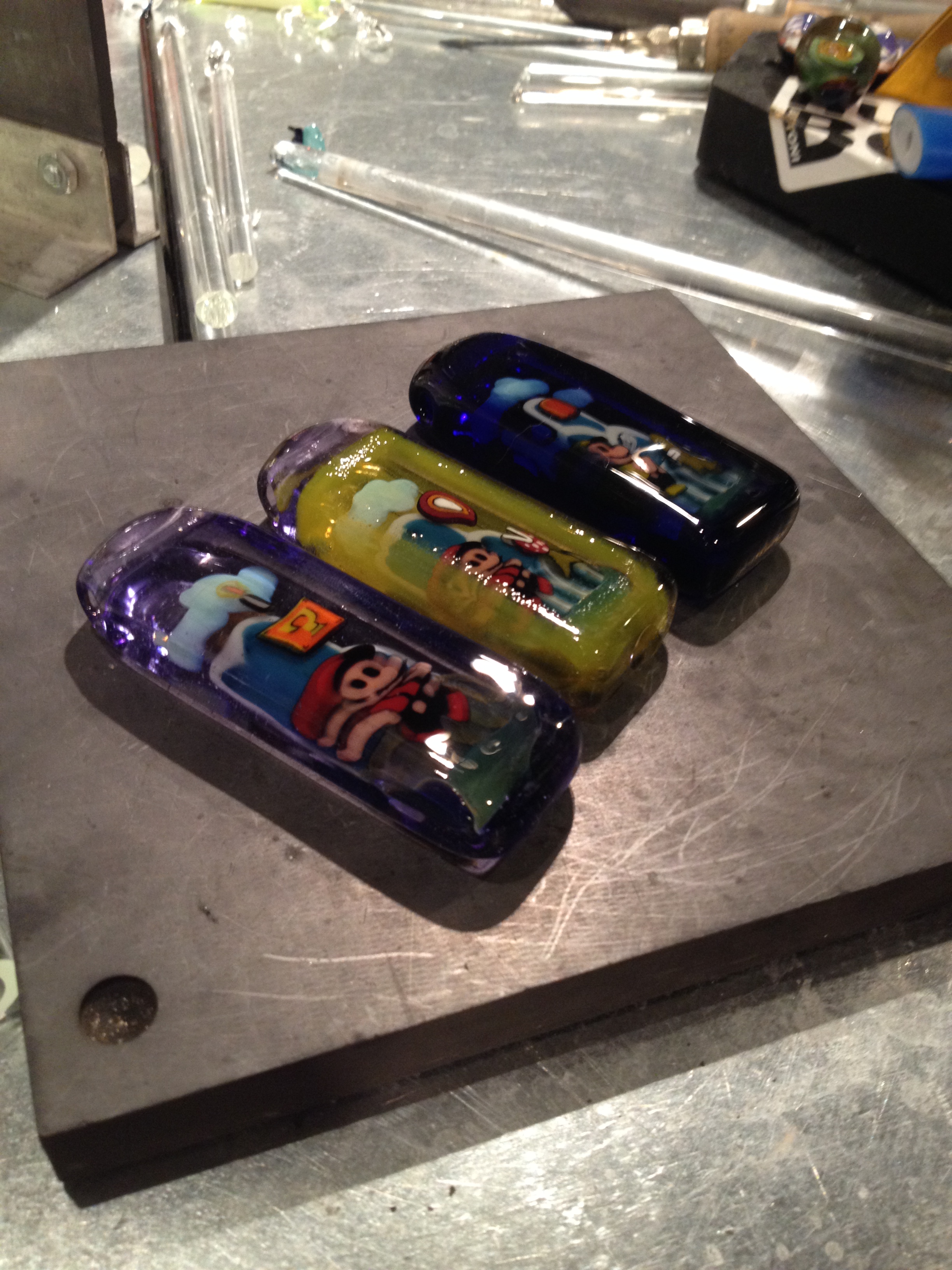Micro’s pipes have been featured in a number of top end gallery shows in Kobe, Japan, New York, and now, Los Angeles. If you are lucky enough, you might just catch Micro at a glassblowing competition or even get to book a glassblowing class with him.