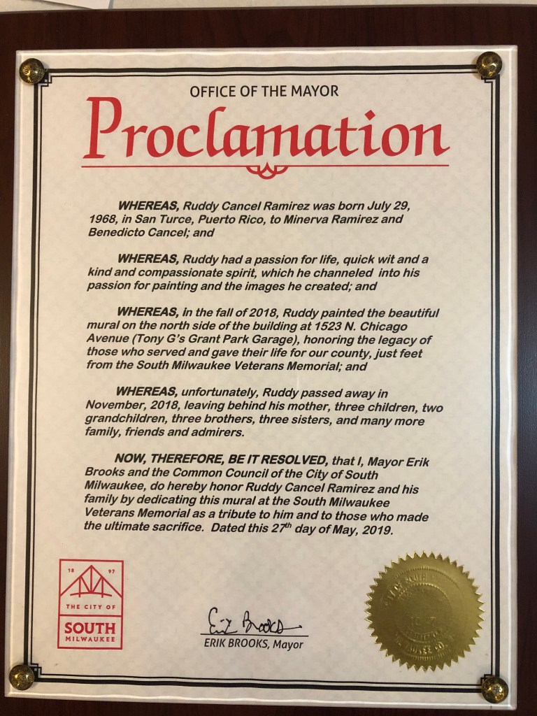 “We remember Ruddy as he would have wanted – through his art. This mural is his legacy, and it’s an incredible one at that. It also represents everything that Memorial Day is all about, about how some have paid the ultimate price, made the ultimate sacrifice, as they served our country.