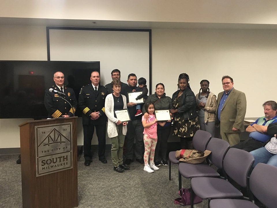 The May 21 city council meeting is my favorite each year, as we get a chance to recognized members of the South Milwaukee Police and Fire Departments and citizens for their heroic acts. I will feature one story each day on my blog. Please thank these everyday heroes!