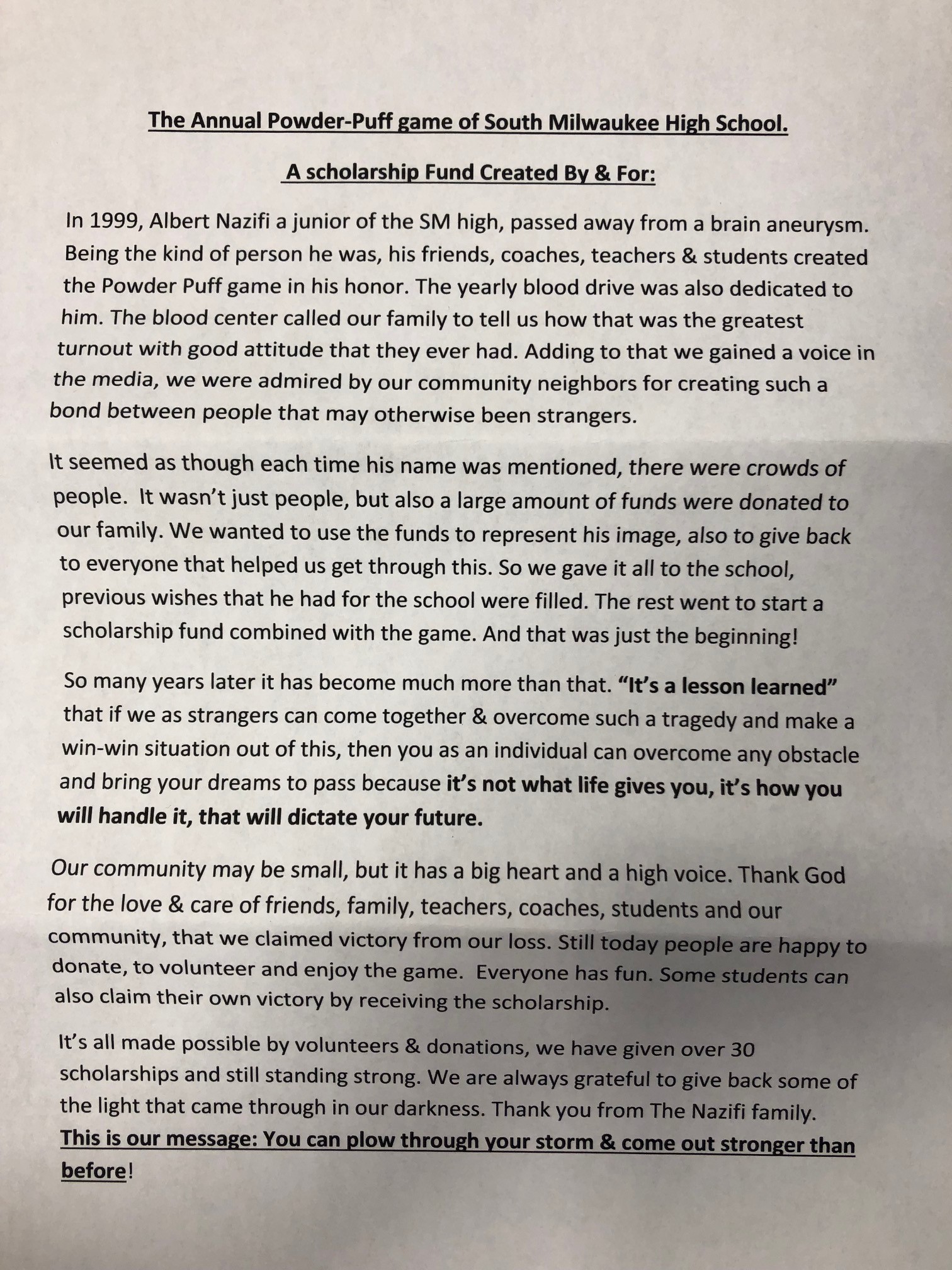 I had the pleasure of meeting of meeting Frieda Abosovski recently, and she told me about this terrific fundraiser in honor of former Rocket student-athlete Albert Nazifi. It’s open to the public, so please check it out!