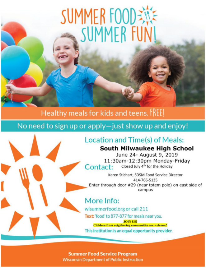 The Summer Food Service Program is funded by the United States Department of Agriculture and administered by the Wisconsin Department of Public Instruction. If you have any questions, please feel free to call.