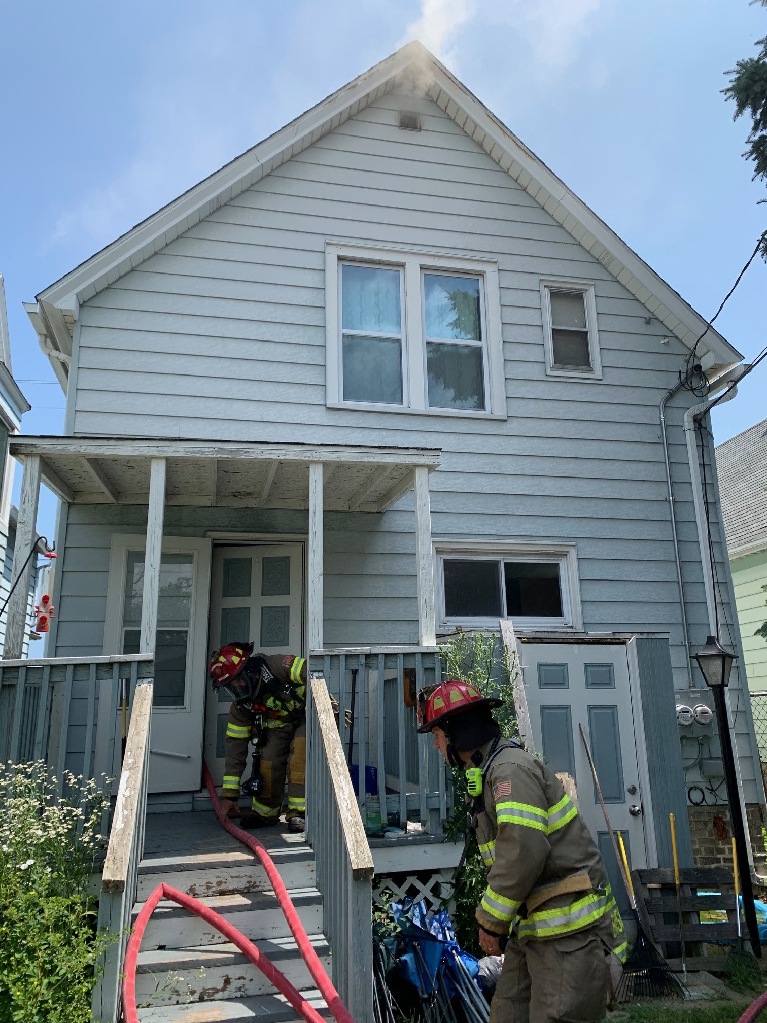 At 12:53PM this afternoon, SMFD received a 9-1-1 call for a report of smoke coming from the attic of a single family residence at 2810 South Chicago. First arriving SMPD units found smoke coming from the eaves and roof vents of the building and notified responding SMFD units who called a working fire, bringing assistance from the Cudahy, St. Francis, Oak Creek, and 128th Airports. At the same time, staffing at the station was reduced by an ongoing ambulance call.