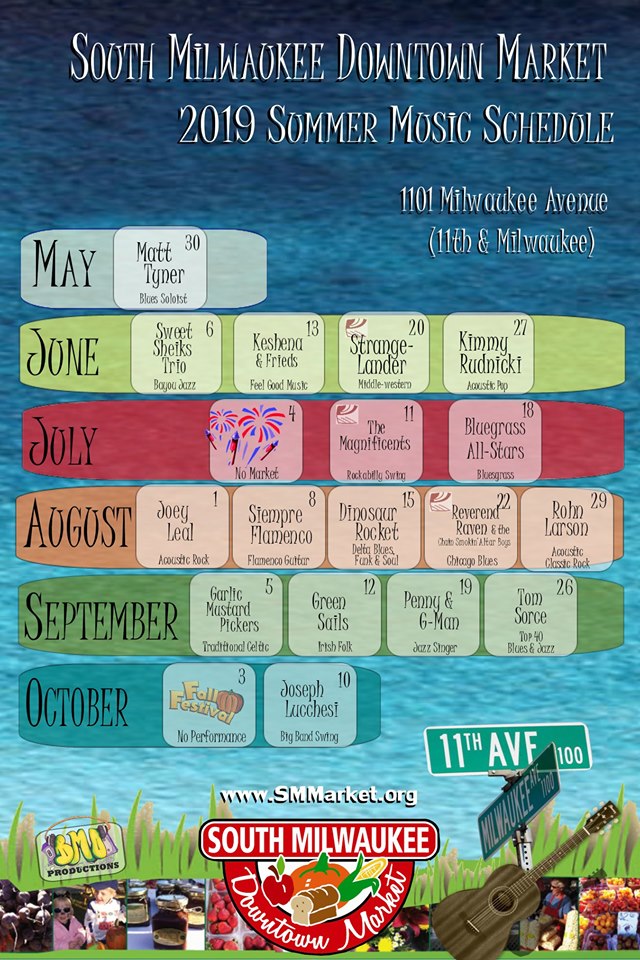 Let’s start with a reminder about all of the live music you can find in our fair city, especially at the South Milwaukee Downtown Market …