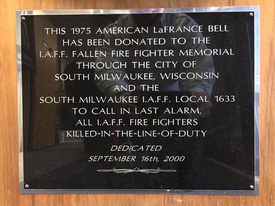 If you’ve ever had the opportunity to visit the South Milwaukee firehouse, you will see this bell prominently displayed in our front lobby. While there are many American LaFrance bells in existence, this bell is one of a kind . . . In fact, the only one of its kind in the world.