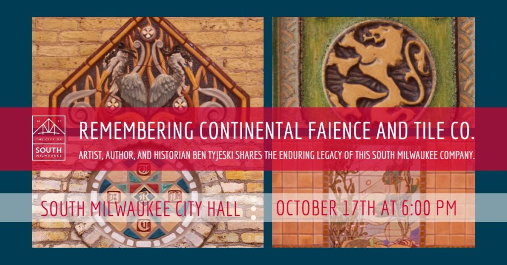 Ben’s love is tile, and this local artist, author and historian is presenting on the legacy of Continental Faience and Tile at 6 p.m. on Thursday, Oct. 17, at City Hall. Mark your calendars and join us for this detailed look at what was made in South Milwaukee, and where you can still that tile today.