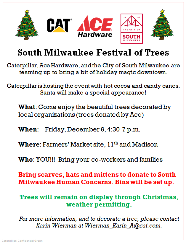 So glad to see this return in 2019 … thanks to Caterpillar, Ace Hardware and the South Milwaukee Street Department for helping this holiday tradition take root. Make your plans for December 6!