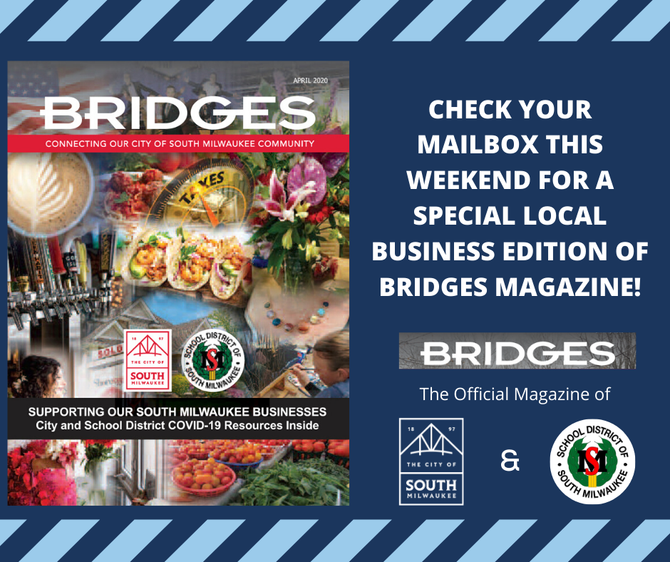 Thanks to the McCarty family and Mr. Fix for leading Wednesday’s food drive for South Milwaukee Human Concerns. Let’s also get the fundraising drive going too, all the way to $20,000. https://www.gofundme.com/f/donate-sm-human-concerns-food-bank-fundraiserThe library is now open for curbside service! Details here.The special edition of the new city magazine arrived in mailboxes this week, with more than 50 free ads for businesses. See the online version here, and look for the first regular edition in early summer!The South Shore Chamber of Commerce is helping local businesses with a cool bingo game. Get a bingo by patronizing these stores — and win! Details here.