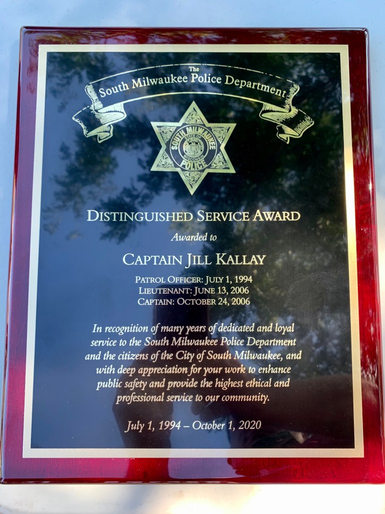 Congratulations to South Milwaukee Police Department Captain Jill Kallay on her retirement. Thank you for your 26 years of service to our community, a commitment to giving back that extends well beyond her role at the department. I was proud to help honor her today, and know she will will continue doing what she does best in the next chapter of her life: helping people.