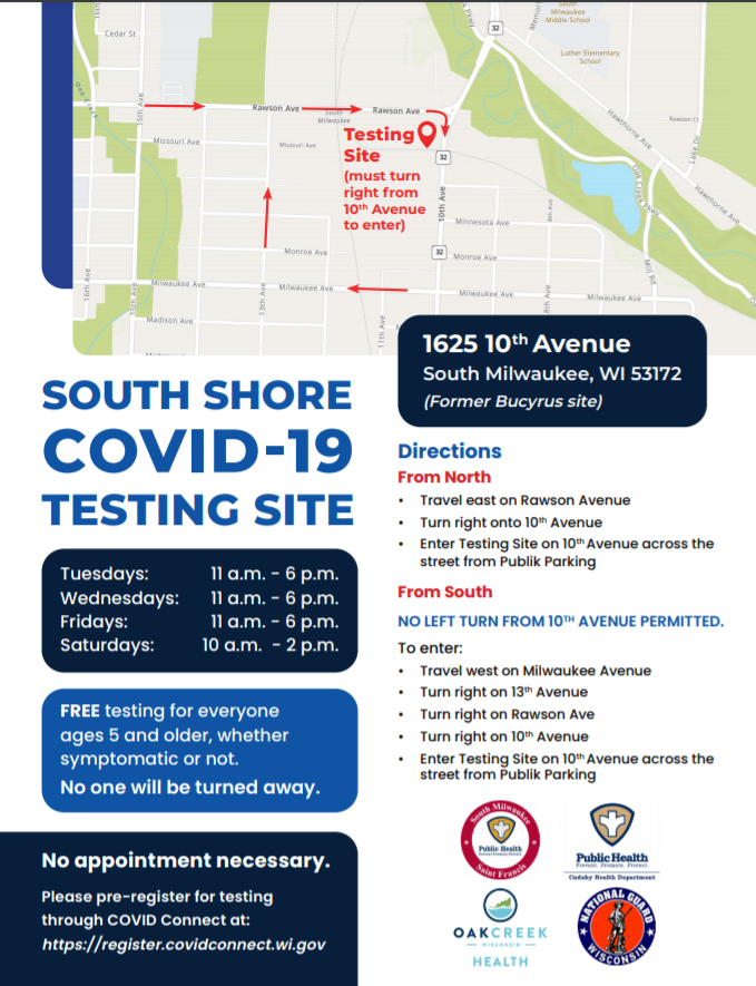 This partnership between the South Milwaukee and St. Francis, Oak Creek and Cudahy Health Departments, and the Wisconsin National Guard may literally save lives. And I can’t thank our local teams enough for leading the way in making this a reality — from the South Milwaukee Engineering and Street teams working on traffic flow to our city attorney for hammering out a lease to our health workers for ensuring this operates smoothly.