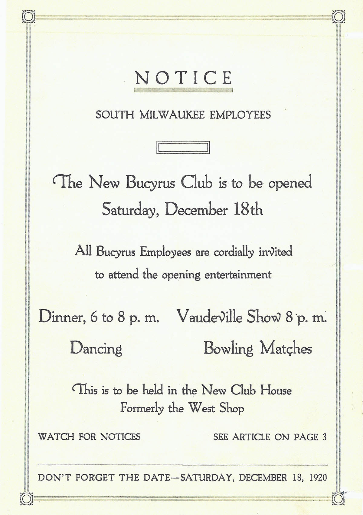 Today marks the 100th anniversary of the opening of the original Bucyrus Club. About seven months from today, it will be be reborn.