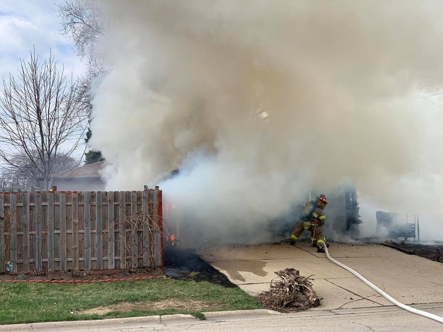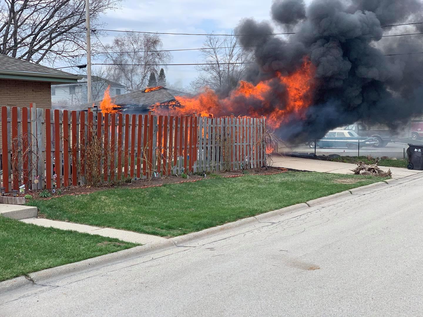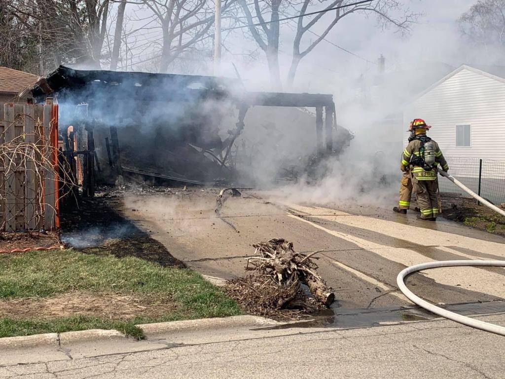 Upon arrival, a fully involved detached garage was found with a neighboring garage and house being exposed to the high heat. Crews attacked the fire, knocking it down quickly. WE Energies – Electric was requested to the scene to assess damaged wires above the garage.