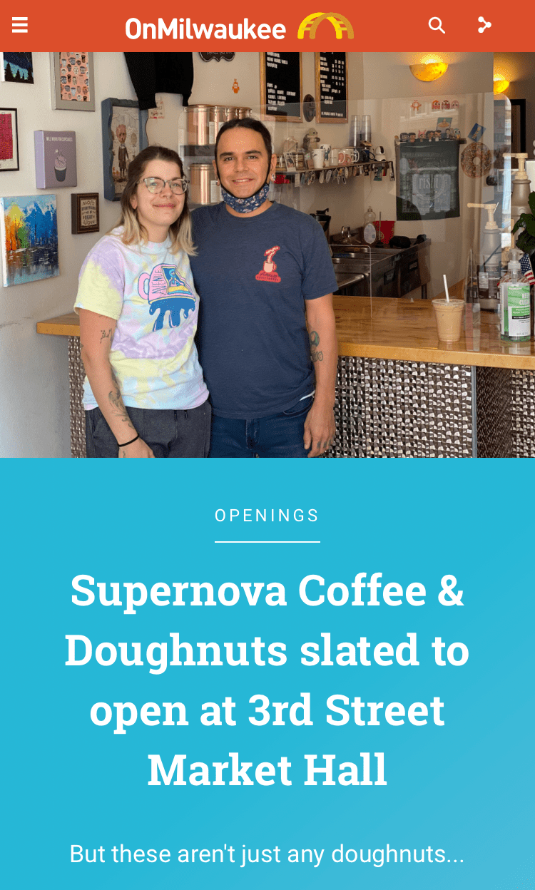 They will be opening Supernova Coffee & Doughnuts as part of the part of the cool new 3rd Street Market Hall in downtown Milwaukee.