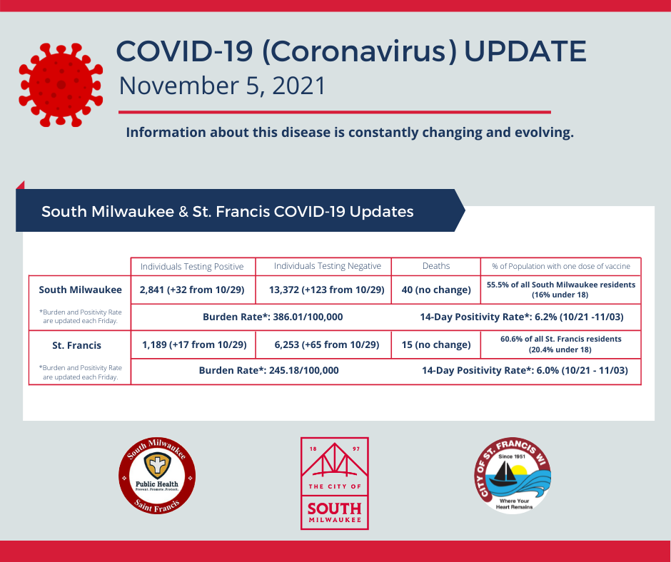 Thank you to the South Milwaukee/St. Francis Health Department for their pediatric COVID vaccine clinic at Rawson Elementary School on 11/8/21.There are still a few openings available.