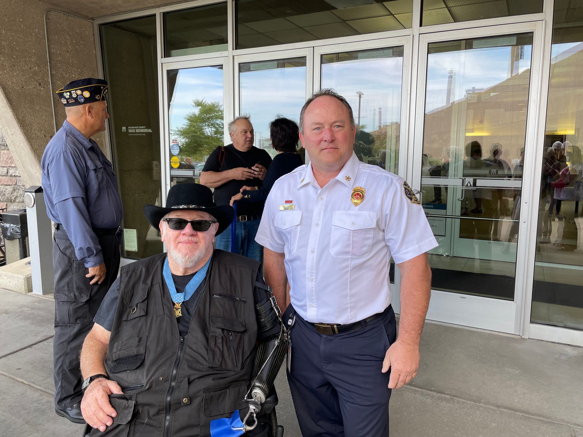 John Litchford, Chief of the South Milwaukee Fire Department, and a Marine Corps veteran, was present to honor Wetzel.