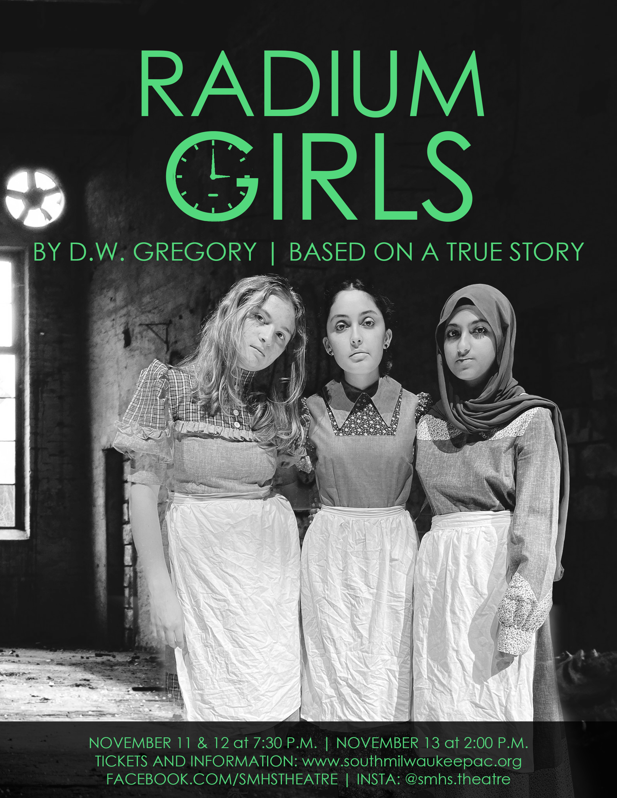Radium Girls, a performance by 12 student actors and a 30+member student crew will be on stage this Friday, Saturday, and Sunday at the South Milwaukee Performing Arts Center. Radium Girls is based on a true story of factory workers who painted luminous watches with glowing radium paint and their efforts to expose their illnesses and get their day in court. “Called a ‘powerful’ and ‘engrossing’ drama by critics, Radium Girls offers a wry, unflinching look at the peculiarly American obsessions with health, wealth, and the commercialization of science.” Visit https://www.southmilwaukeepac.org/ for tickets.