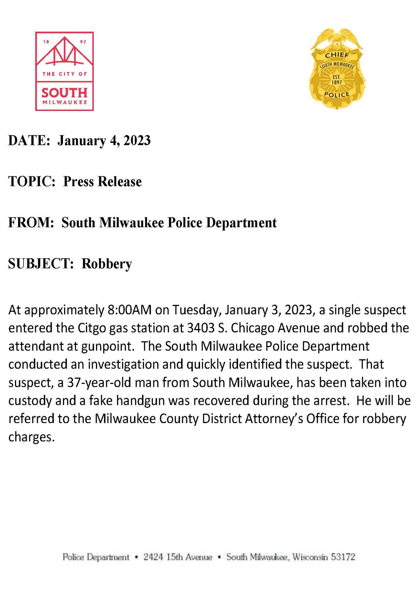 From the South Milwaukee Police Department …