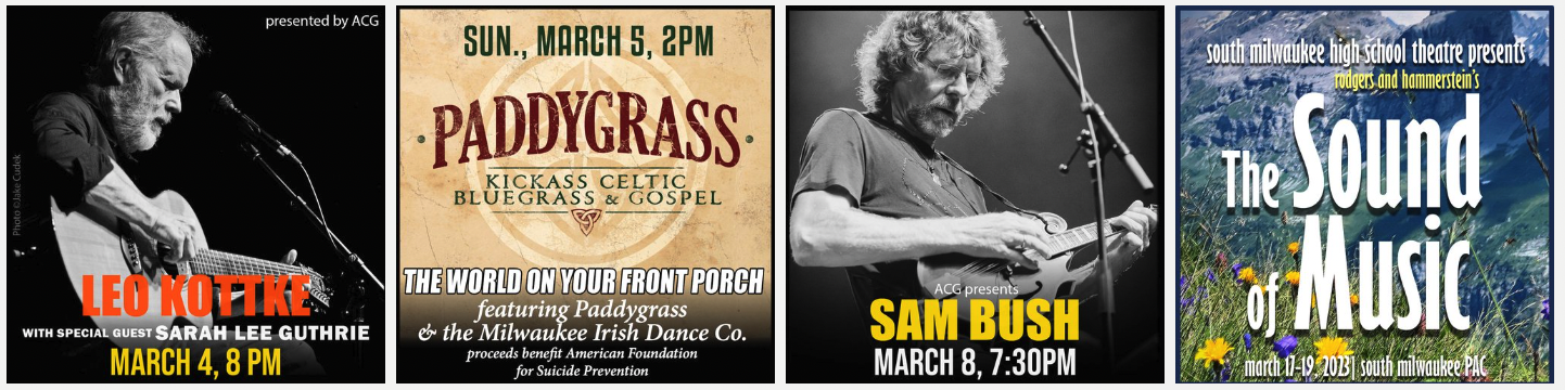 - Wednesday, March 8: Sam Bush, 7:30 p.m., South Milwaukee PAC. Details
