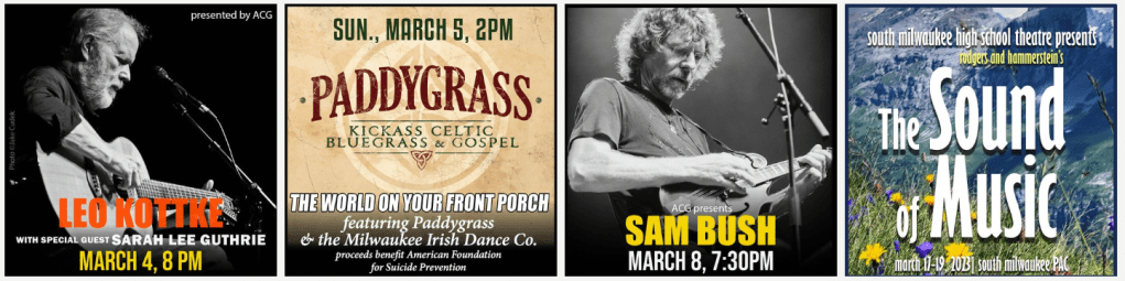 - Sunday, March 5: “The World on Your Front Porch,” featuring Paddygrass and the Milwaukee Irish Dance Company, 2 p.m., South Milwaukee Performing Arts Center. Details