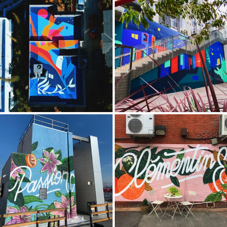 Mika Revell, an accomplished Asian-American artist boasting a rich portfolio, having collaborated with esteemed clients like the SoFi Stadium for Superbowl LVI, Angels Stadium, and the Architecture and Design Museum of Downtown LA is assisted by Leila Youssefi, a Los Angeles-based PersianAmerican artist and environmentalist, with expertise honed with mural giant, Branded Arts.