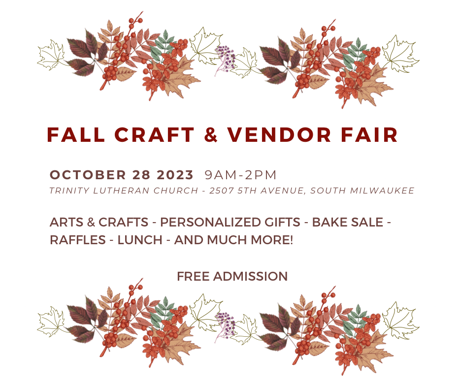 - Saturday, October 28: Fall Craft & Vendor Fair, 9 a.m. to 2 p.m., Trinity Lutheran Church, South Milwaukee. Details