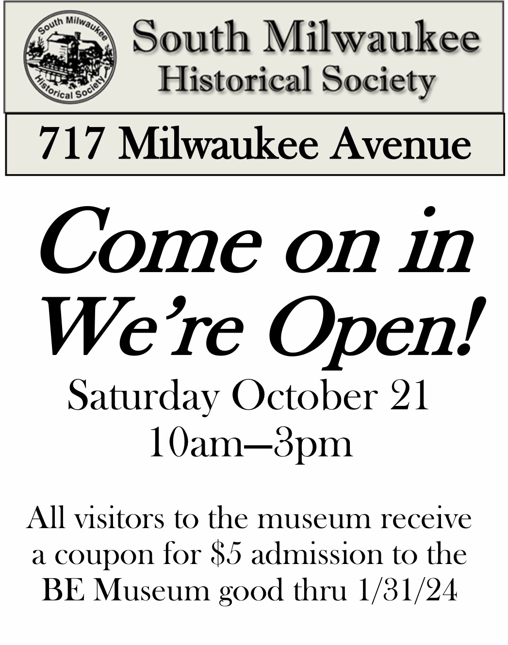 - Saturday, October 21: South Milwaukee Historical Society Open House, 10 a.m.-3 p.m. Details