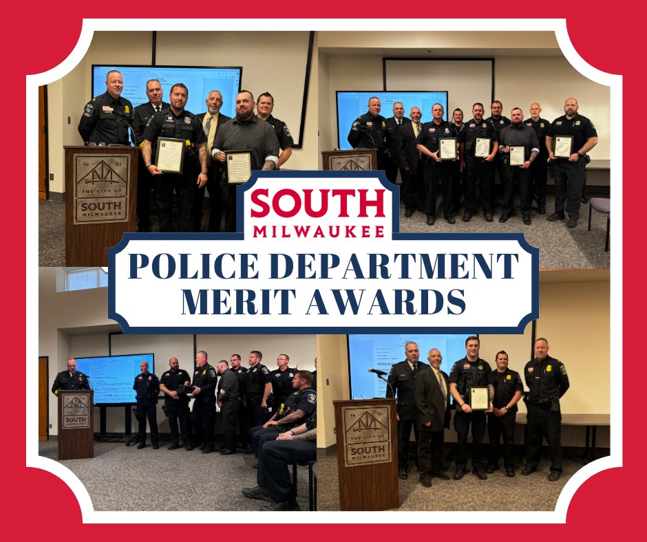 At Tuesday’s (May 21) Common Council meeting, Police Chief Jessup had the opportunity to recognize the recipients of the South Milwaukee Police Department annual merit awards. These awards recognize the outstanding dedication, bravery, and service of our officers who go above and beyond to keep our community safe. Congratulations to all the recipients!