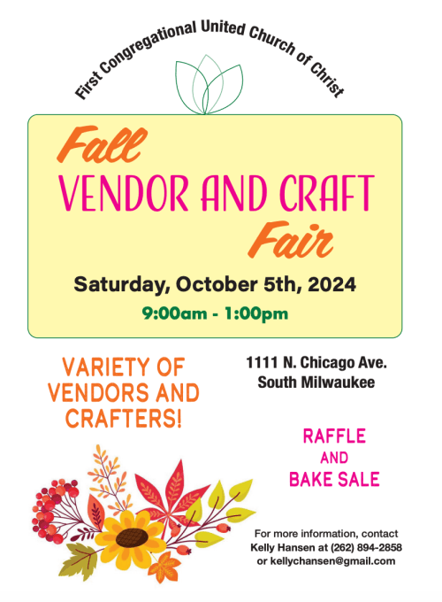- Saturday, October 5: Fall Craft & Vendor Fair, 9 a.m.-1 p.m., First Congregational UCC Church. Details