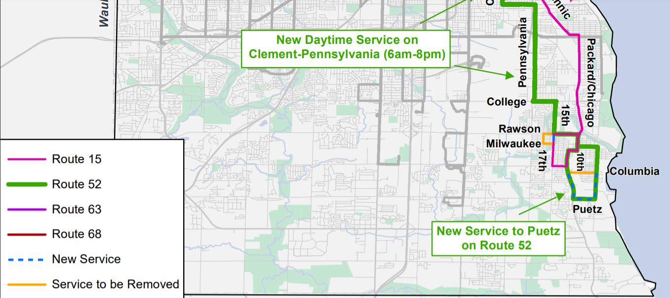 Changes impacting Routes 15 and 52 in South Milwaukee take effect March 7. See the detailed changes here.