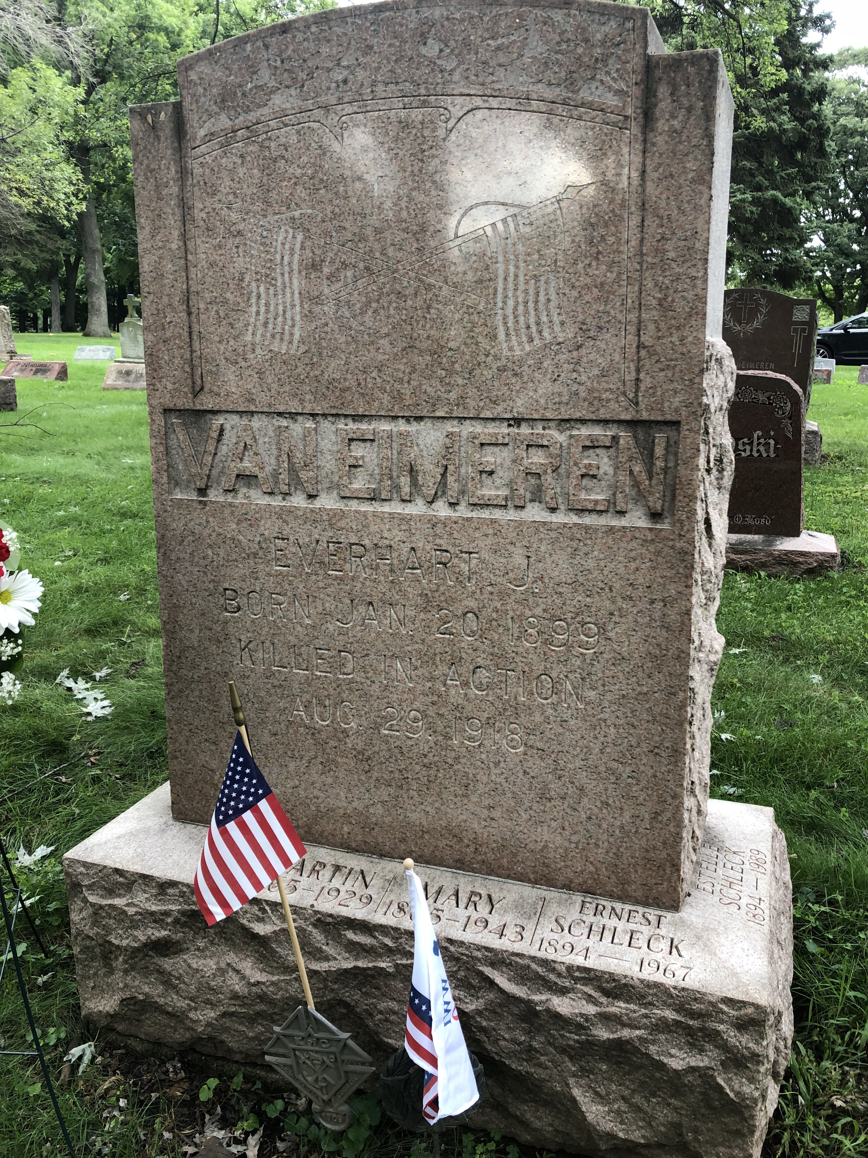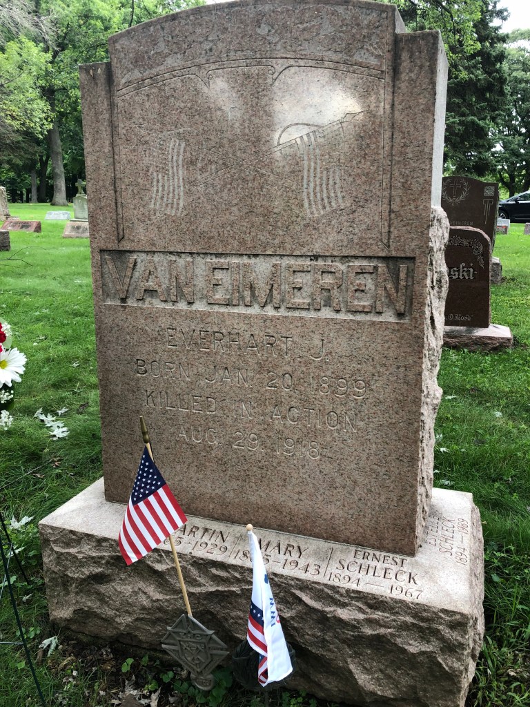 Legion post namesake Everheart Van Eimeren is buried at Holy Sepulcher Cemetery in Cudahy. He and two other South Milwaukee veterans buried here were honored in 2018.